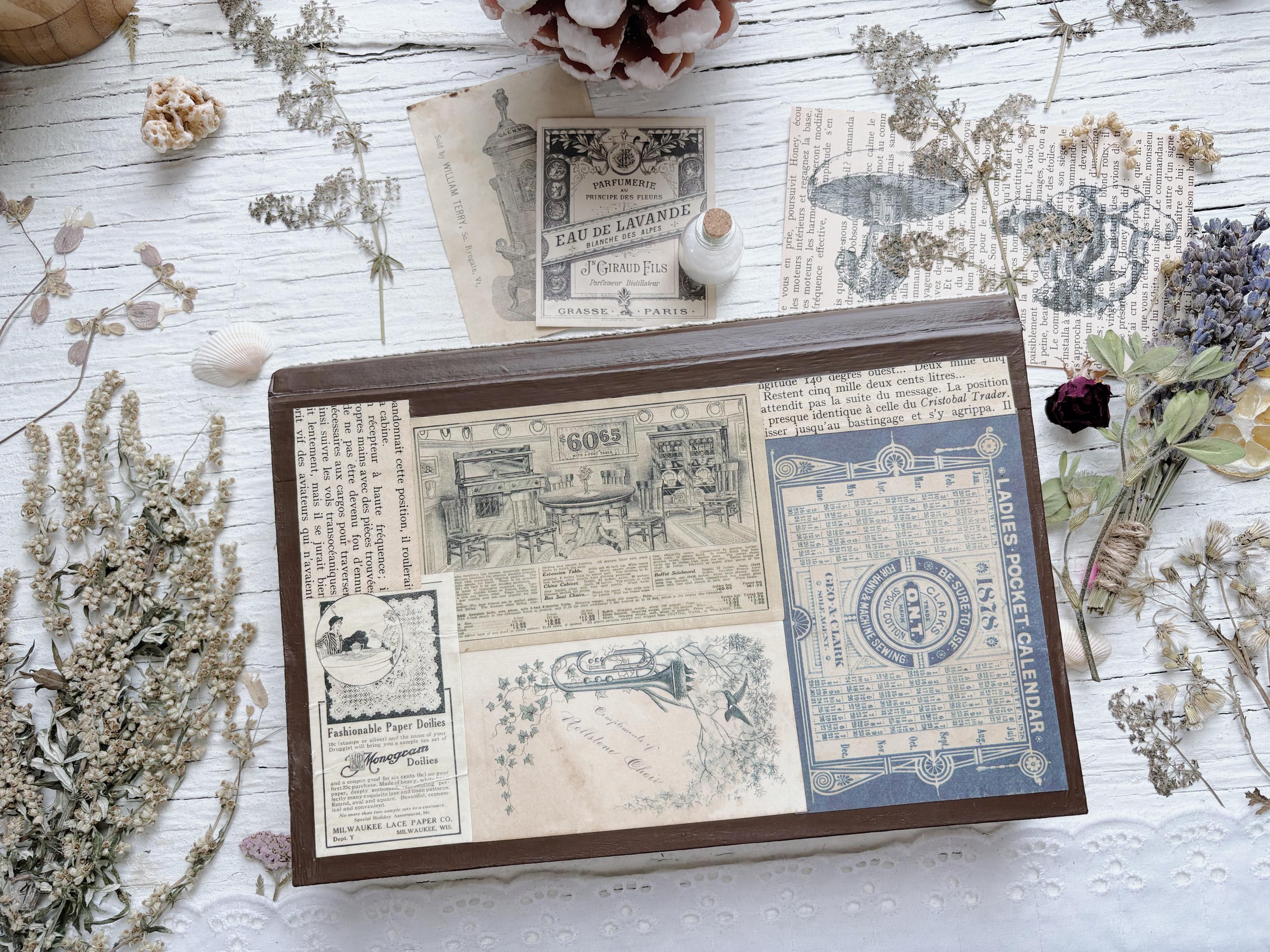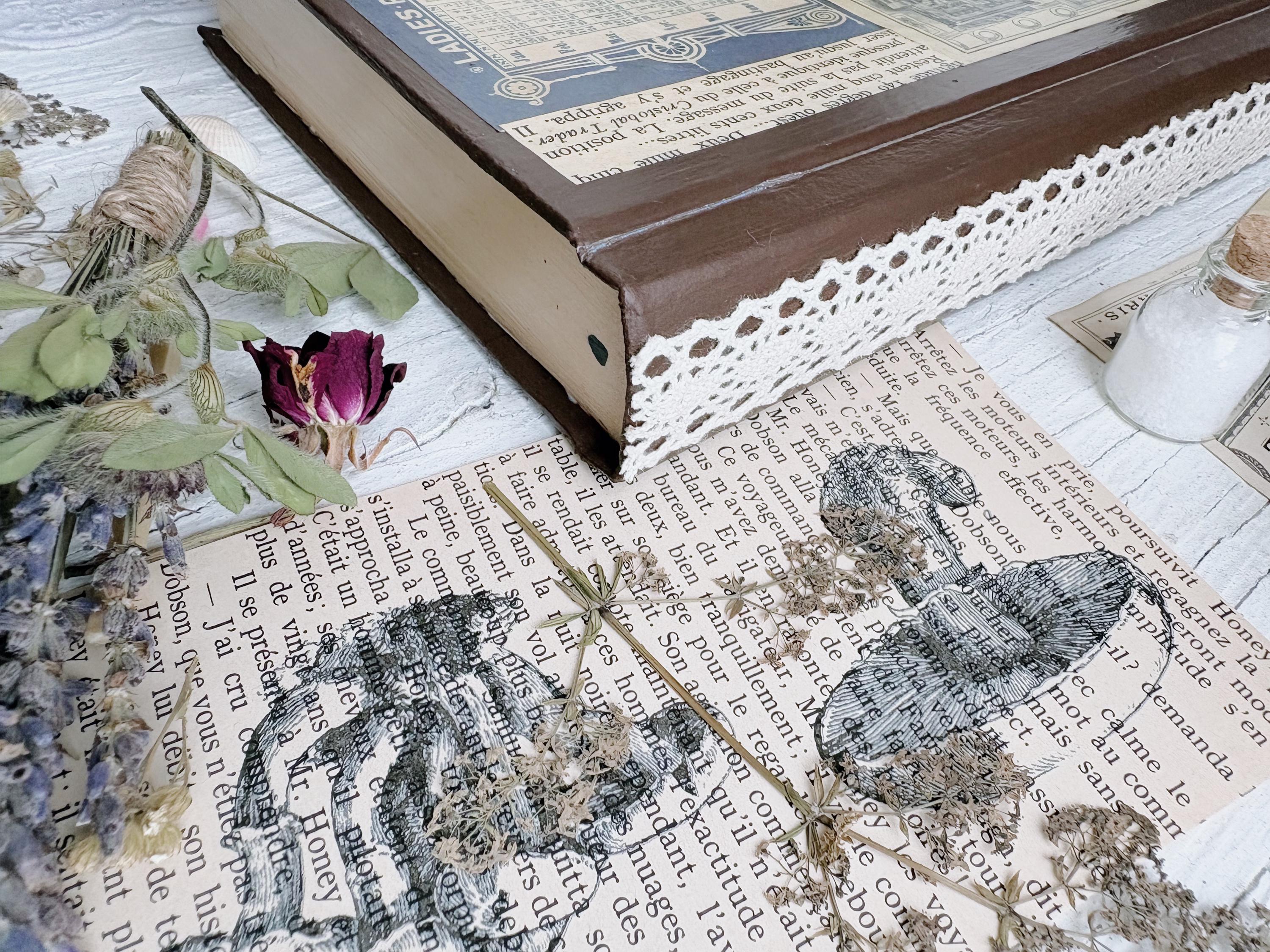 1 Vintage* Faux Book box w vintage lace & labels [ French Book ]